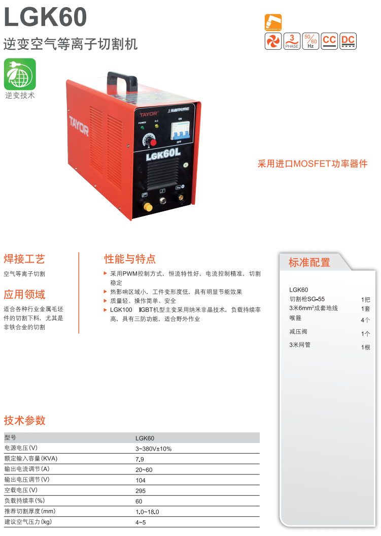 当前位置:产品展示 >> 通用等离子切割机 >> LGK-60直流等离子切割机