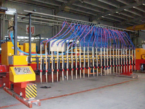 ZT系列直条切割机,又叫板条切割机、裁条切割机,广泛应用于钢结构待业的板条切割; 主机正面配置N组线割炬,用于纵向直线切割; 背面一组横向割炬用于直线切割; 该机采用可控硅调速,直流伺服电机驱动; 可选总体割炬升降机构; 可选配水喷洒装置; 可选配本公司出产的扇形双头割炬,能经济地增加切割机数以及缩小切割板条的宽度。